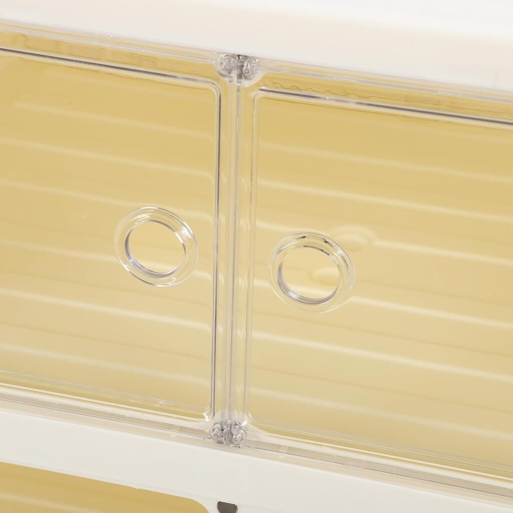 Il coperchio trasparente permette di vedere il contenuto a colpo d’occhio, senza bisogno di aprire ogni scatola. La chiusura magnetica impedisce l’ingresso di polvere e mantiene tutto pulito e ordinato.